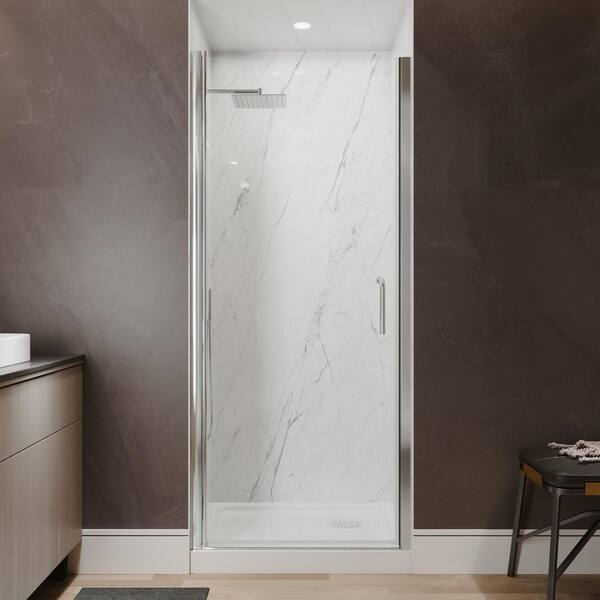 Victoria 32 to 33-3/8 in. W x 72 in. H Pivot Swing Frameless Shower Door in Chrome with Clear Glass