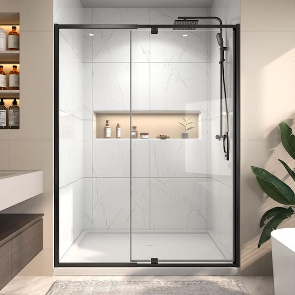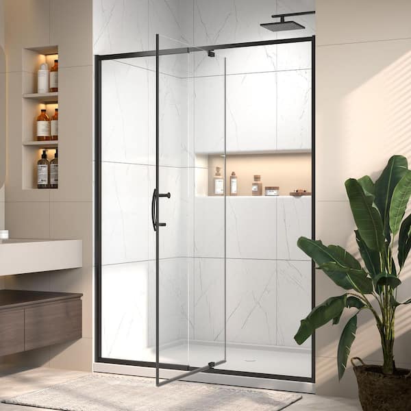 Victoria 50 in. - 54 in. W x 71 in. H Pivot Framed Shower Door in Matte Black Finish with Clear Glass