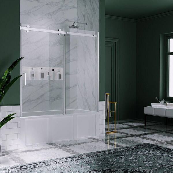Victoria 56- 60 in. W x 58 in. H Sliding Semi Frameless Tub Door in Silver Finish with Clear Glass