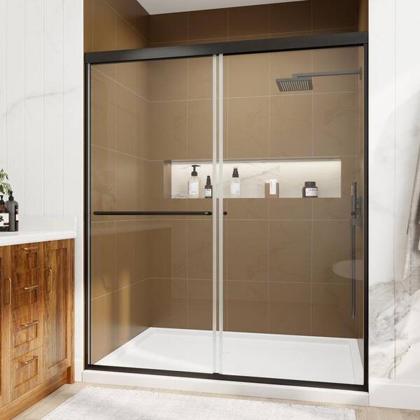 Victoria 60 in. W x 70 in. H Sliding Framed Shower Door in Black Finish with Clear Glass