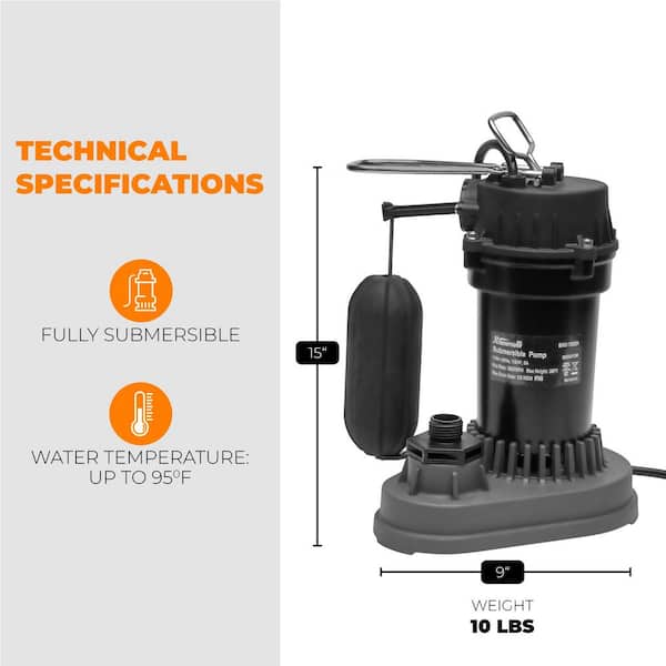 1/2 HP 3800 GPH Aluminum Alloy Submersible Sump Pump with Integrated Vertical Float Switch