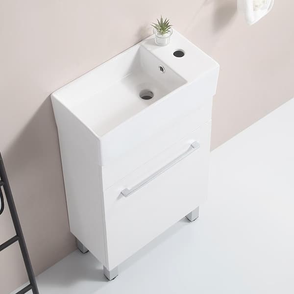19 in. White Solid Wood Bathroom Cabinet with Ceramic Sink