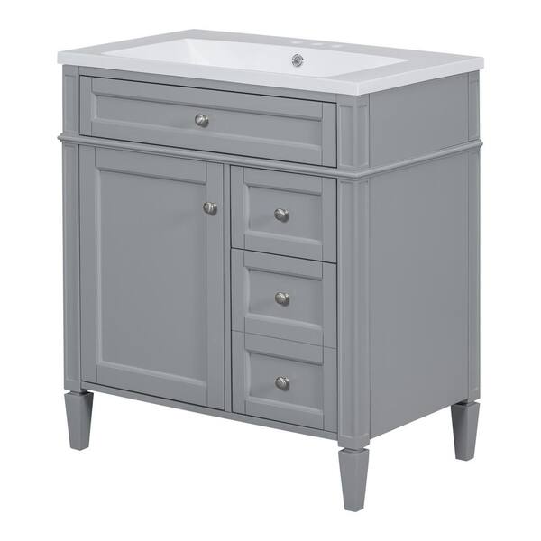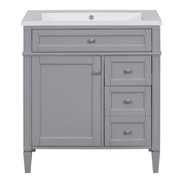 30 "Bathroom vanity, gray solid wood bathroom storage cabinet, 2 drawers and a flip drawer, single sink bathroom vanity