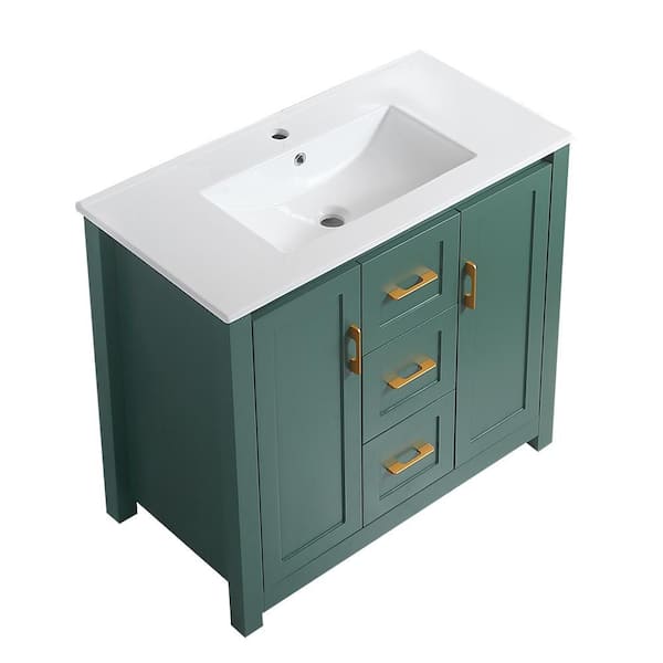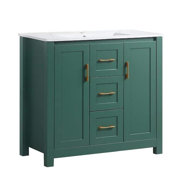 36 in. Green Bathroom Vanity with Ceramic Sink Combo,MDF Wood Green 2 Doors and 3 Drawer, Multifunctional Storage