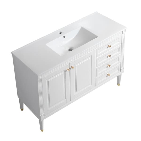 MDF 48 in. Bathroom Vanity with Ceramic Sink Combo with White 2-Soft Closing Doors and 4-Drawers