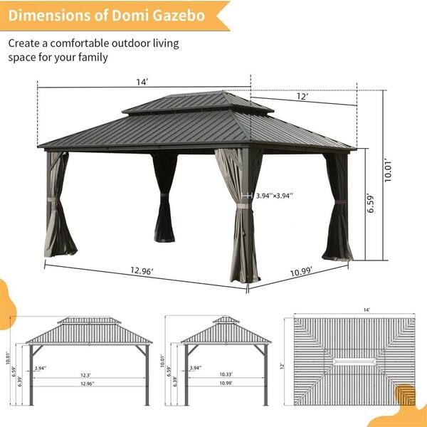 12 ft. x 14 ft. Hardtop Gazebo Metal Gazebo with Galvanized Steel Double Roof Canopy, Curtain and Netting