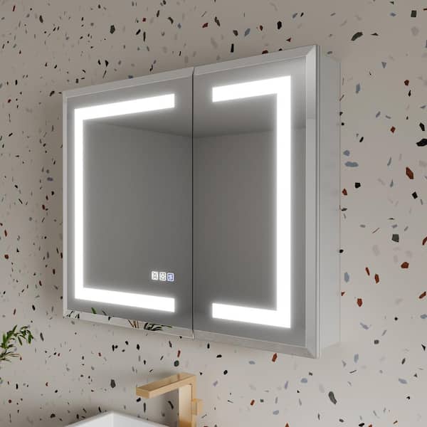 30 in. W x 24 in. H Rectangular LED Anti-Fog Medicine Cabinet with Mirror, UL Recognized, Adjustable Laminates