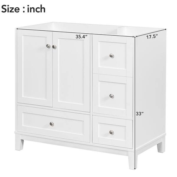 35.4 in. W Bath Vanity Cabinet without Top in White with 2-Doors, 3-Drawers