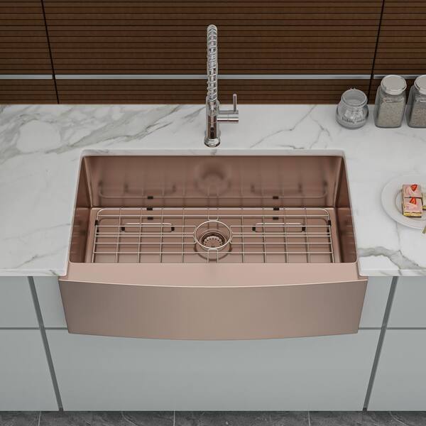 36 in. Farmhouse Single Bowls Stainless Steel Kitchen Sink in Roes Gold with Accessories
