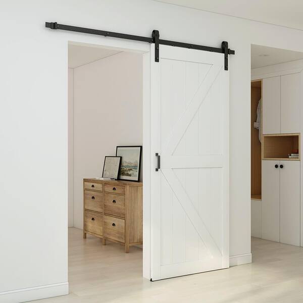 36 in. x 84 in. Solid Core Wood Barn Door Slab with Hardware Kit Not Included, White PVC Film Finish