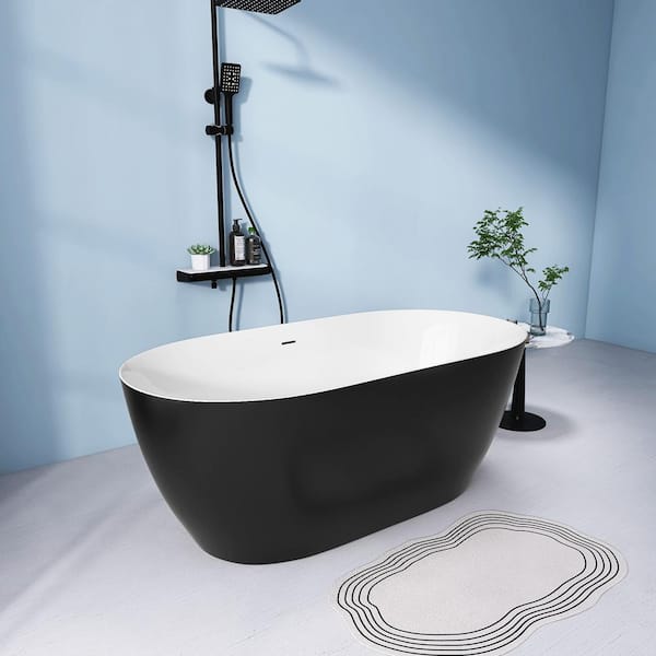 59 in. x 30 in. Soaking Bathtub in Matte Black with Drain, Chrome Overflow