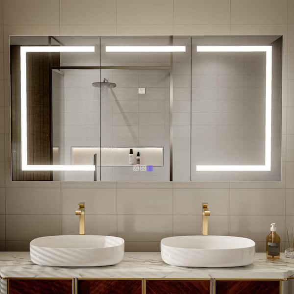 60 in. W x 32 in. H Rectangular LED Anti-Fog Medicine Cabinet with Mirror and USB Outlet, Clock