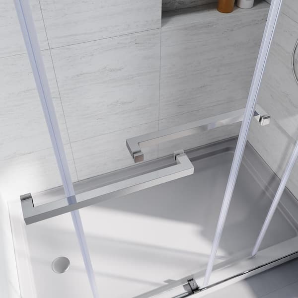 60 in. W x 62 in. H Frameless Sliding Tub Door in Chrome with Clear Tempered Glass and 2 Piece Rectangle Handles