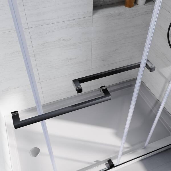 60 in. W x 76 in. H Sliding Frameless Shower Door in Matte Black Finish with 3/8 in. Clear Glass and Stainless Steel