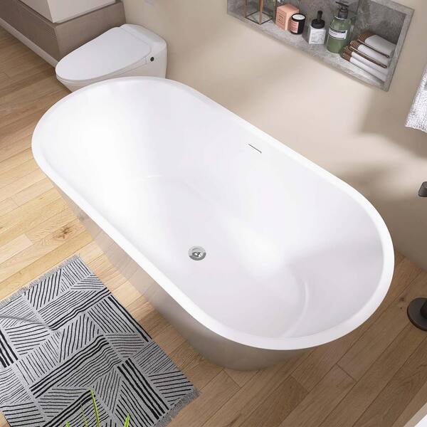 63 in. x 29.5 in. Soaking Bathtub in White with Drain, Chrome Overflow
