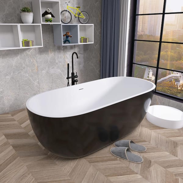65 in. x 29.5 in. Soaking Bathtub in Black with Drain, Overflow