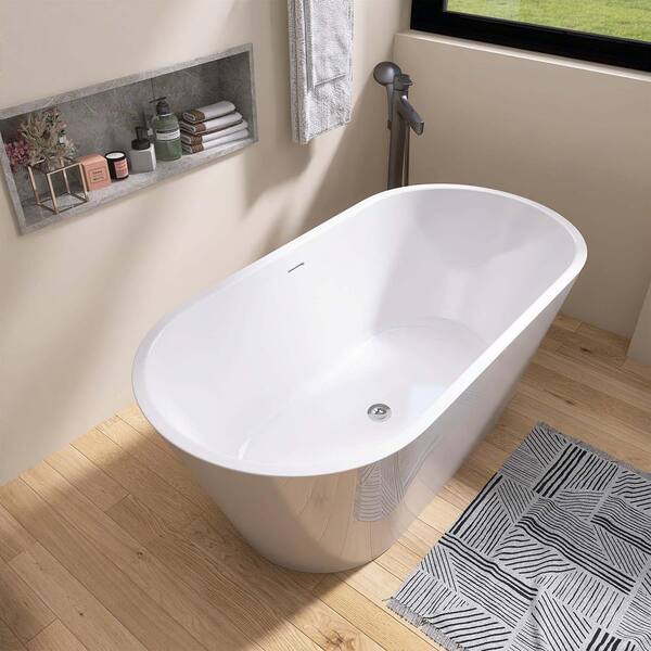 67 in. x 29.5 in. Soaking Bathtub in White with Drain, Chrome Overflow