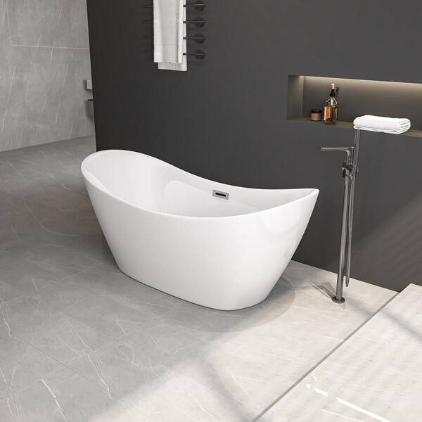 67 in. x 30 in. Soaking Bathtub in White with Drain, Chrome Overflow