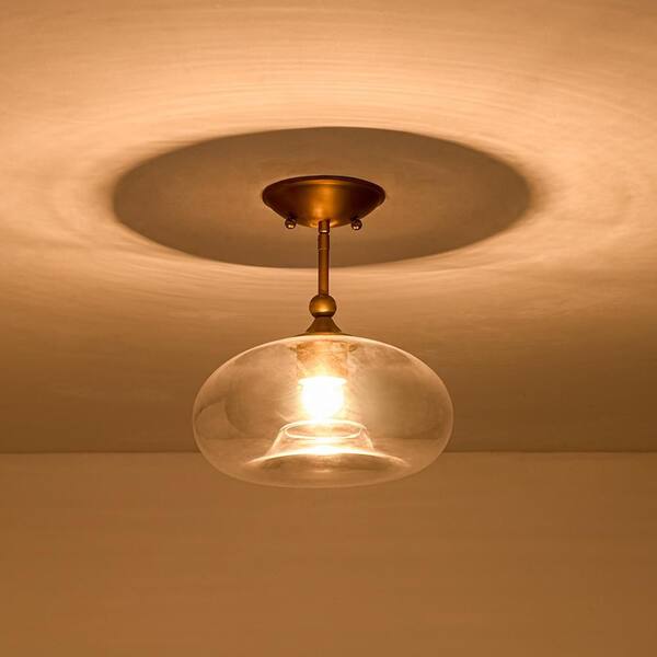 10.63 in. 1-Light Brushed Gold Modern Semi-Flush Mount Ceiling Light Mid Century Vintage Pendant with Clear Glass Shade