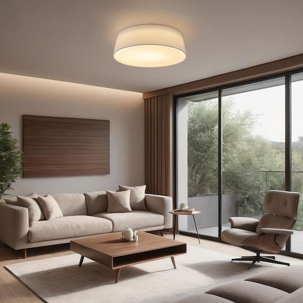 16.3 in. LED Flush Mount Ceiling Light Modern Cone Light Fixture with White Fabric Shade and Milky Glass Shade