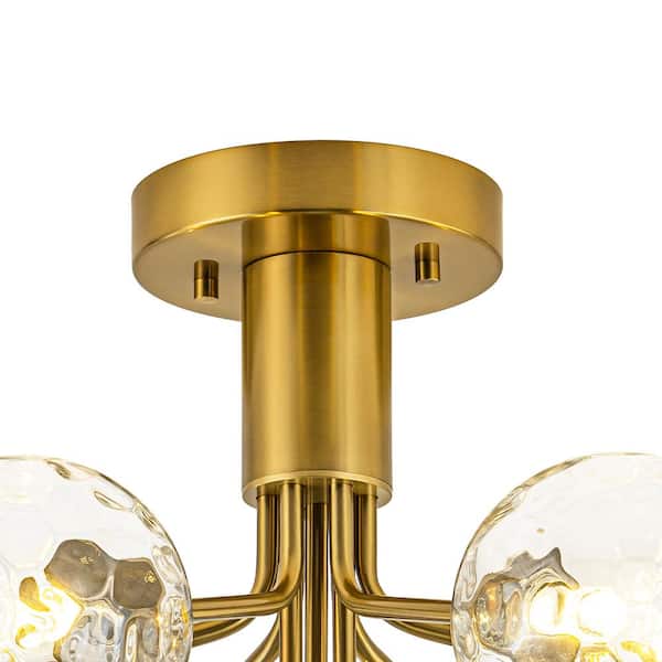 23.23 in. 9-Light Brushed Gold Mid-Century Modern Semi-Flush Mount With Clear Stone Textured (Water Ripple) Glass Shade