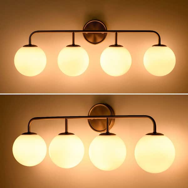 29.92 in. 4 Light Brushed Gold Vanity Light with Milk Glass Shade Modern Bathroom Vanity Light Transitional Wall Sconce