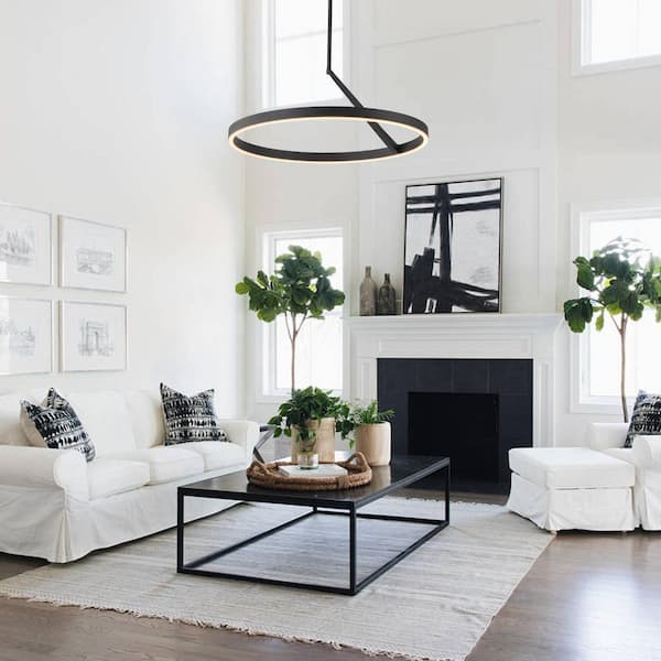 30-Watt 1 light Sandy Black Modern Circular Integrated LED Pendant Light with Open Metal Ring Shade