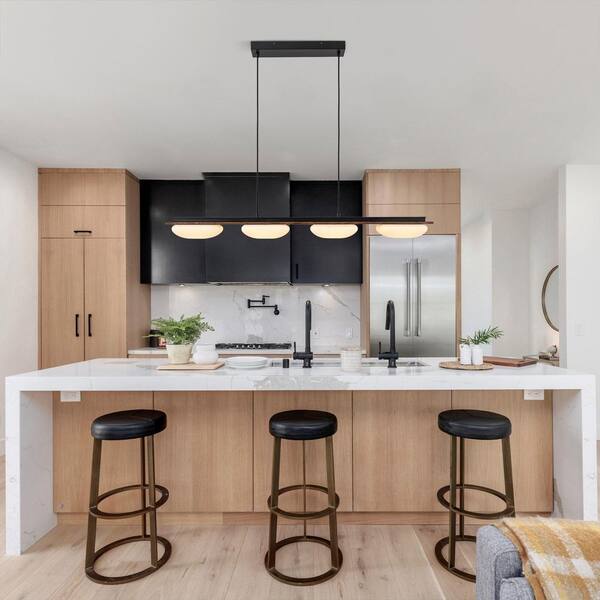 4 Light Integrated LED Matte Black Rustic Square Chandelier for Dining Room with Acrylic Shade