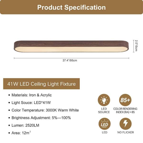 5.51 In. 41W Modern Walnut Integrated LED Flush Mount with White Acrylic Shade, Minimalist Dimmable LED Ceiling Light