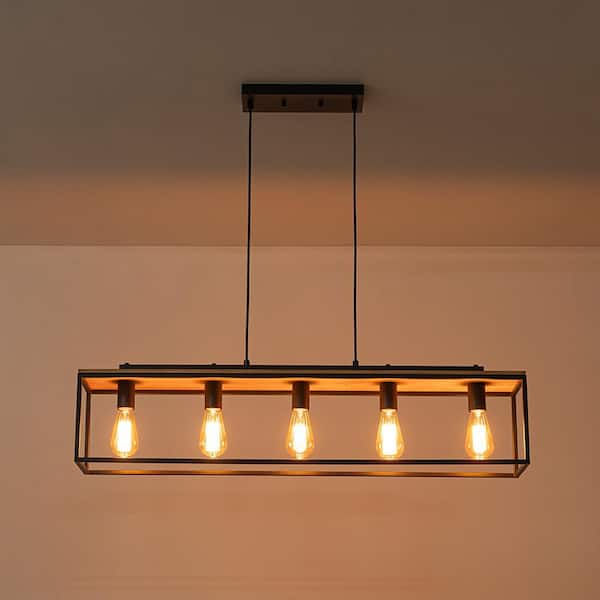 5-Light Matte Black Modern Farmhouse Rectangular Chandelier for Dining Room with No Bulbs Included