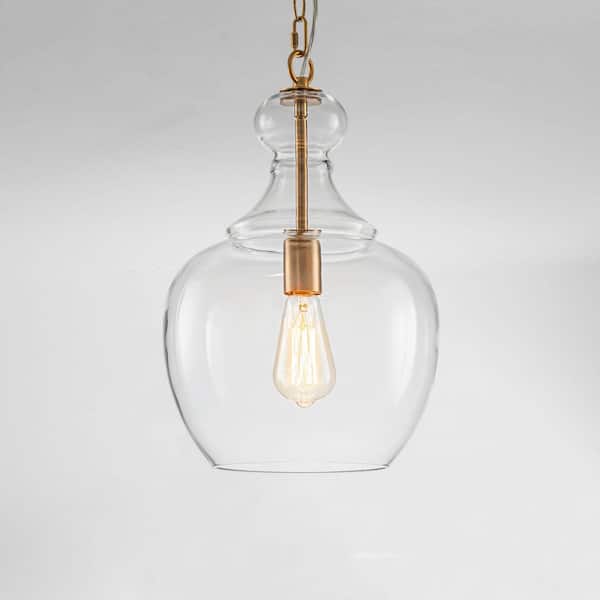 60-Watt 1 Light Gold Plating Modern Industrial Shaded Pendant Light Fixture with Clear Glass Shade, No Bulbs Included