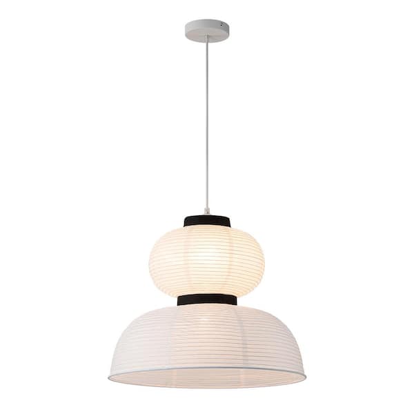 60-Watt 1-Light White Lantern Pendant Light with Cotton Paper Shade , No Bulbs Included
