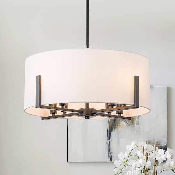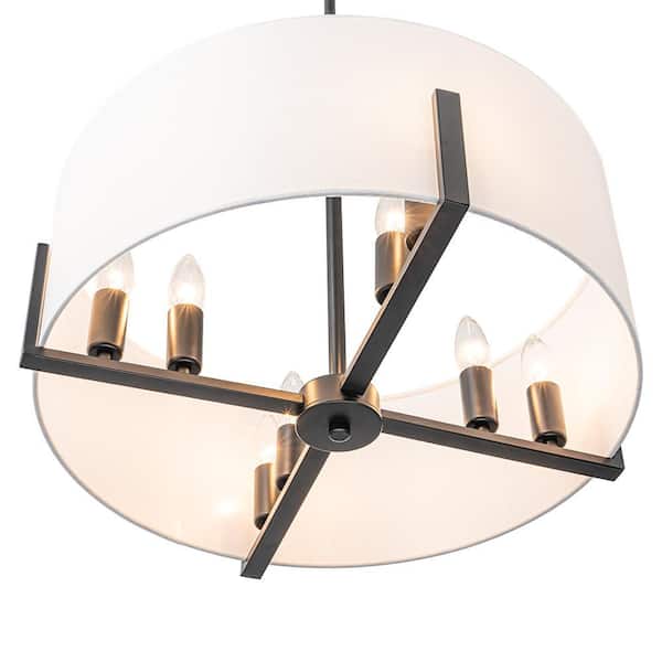8 Light Black Modern Traditional Drum Chandelier Hanging Light for Bedroom with White Fabric Shade, No Bulb Included