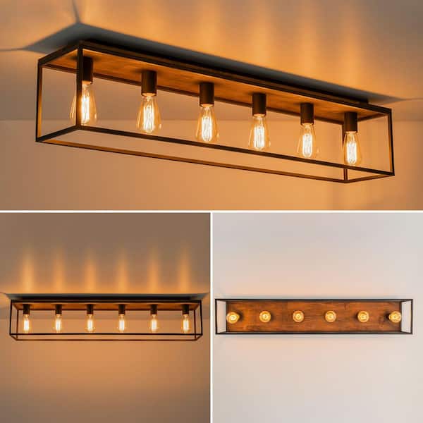 Velar 43 in. 6-Light Modern Farmhouse Matte Black Flush Mount Ceiling Light for Living Room Kitchen Island