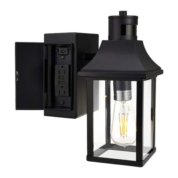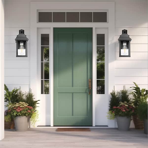 1-Light Black Dusk to Dawn Motion Sensor Outdoor Wall Lantern Sconce with Clear Glass
