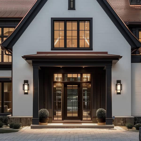 1-Light Black Outdoor Wall Lantern Sconce with Water Glass Shade, Hardwired Exterior Light Fixture with LED Bulbs