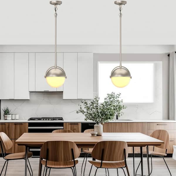 1-Light Brushed Nickel Mini-Pendant Light with Frosted Glass Shade