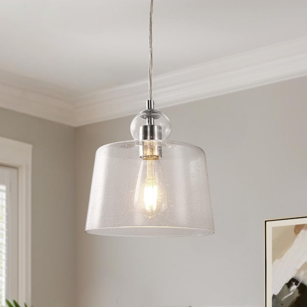 1-Light Brushed Nickel Mini Pendant Light with Seeded Glass for Kitchen Island, Dining Area, or Hallway