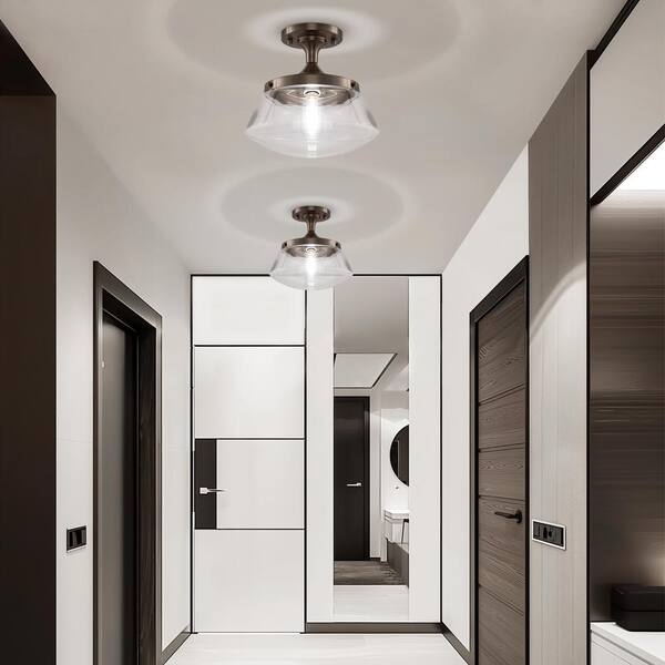 10 in 1-Light Brushed Nickel Semi-Flush Mount Ceiling Light with Clear Glass Shade for Entryway, Hallway, Bedroom