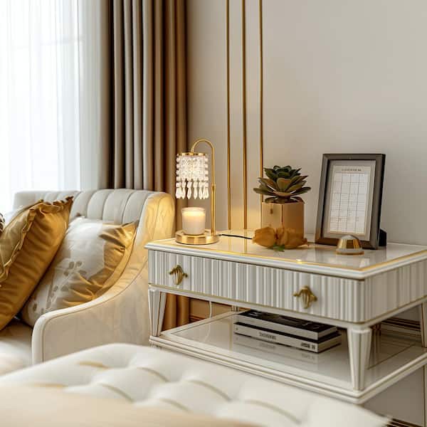 11 in. 1-Light Brass Crystal Gooseneck Task and Reading Desk Lamp, 2-4-8 Hour Timer with 50W GU10 Halogen Bulbs
