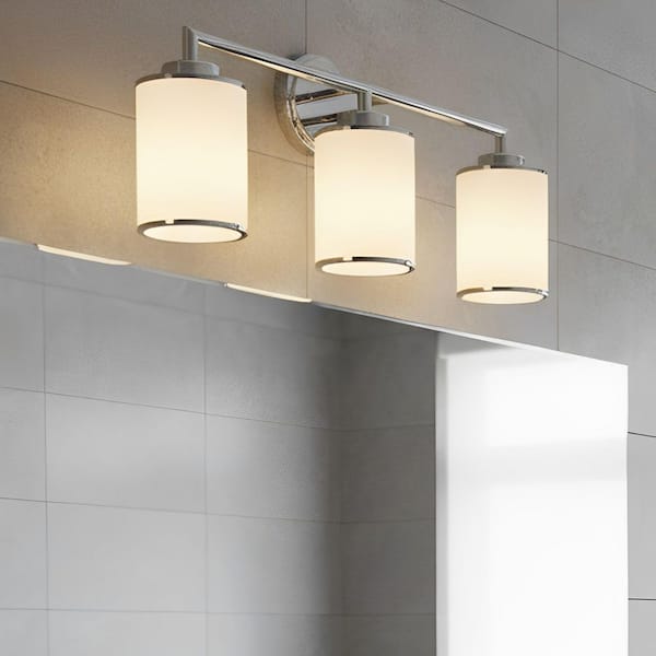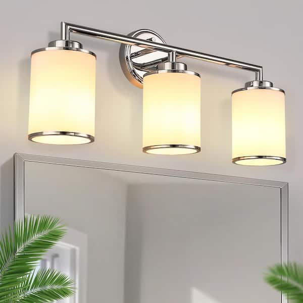 17 in. 3-Light Chrome Vanity Light with Frosted Glass Shades, Modern Bathroom Wall Sconce for Vanity, Mirror