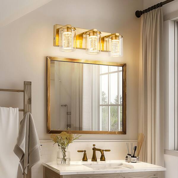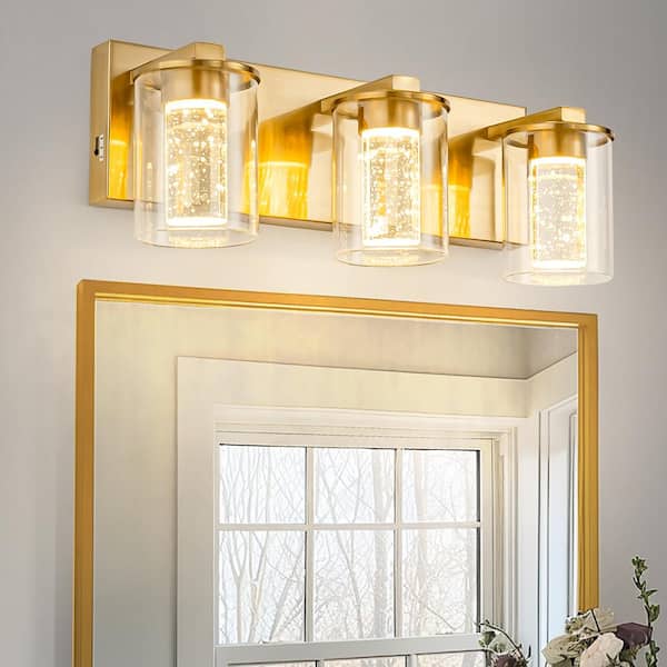 17 in. 3-Light Gold Crystal Integrated LED Bathroom Vanity Light Fixture, Dimmable with Adjustable Color Temperatures