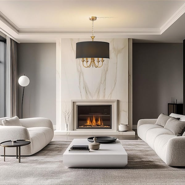 20 in. 5-Light Gold Candle Style Empire Chandelier with Black Fabric Shades for Dining Room