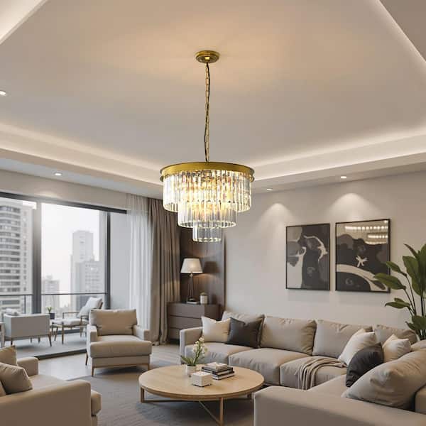 20 in. 6-Light Gold Modern Crystal Chandelier, 3-Tier Pendant Light Fixture, Ceiling Lamp for Bedroom or Dining Area