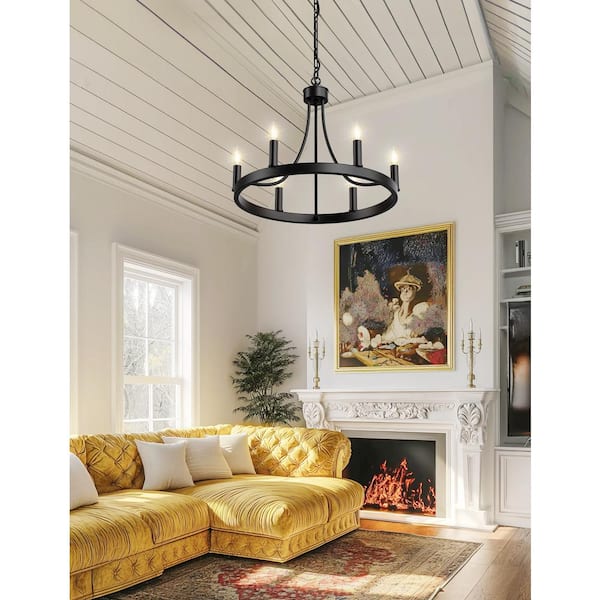 20 in. 6-Lights Black Wagon Wheel Chandeliers, Farmhouse Pendant Light Fixture for Kitchen Foyer Entryway