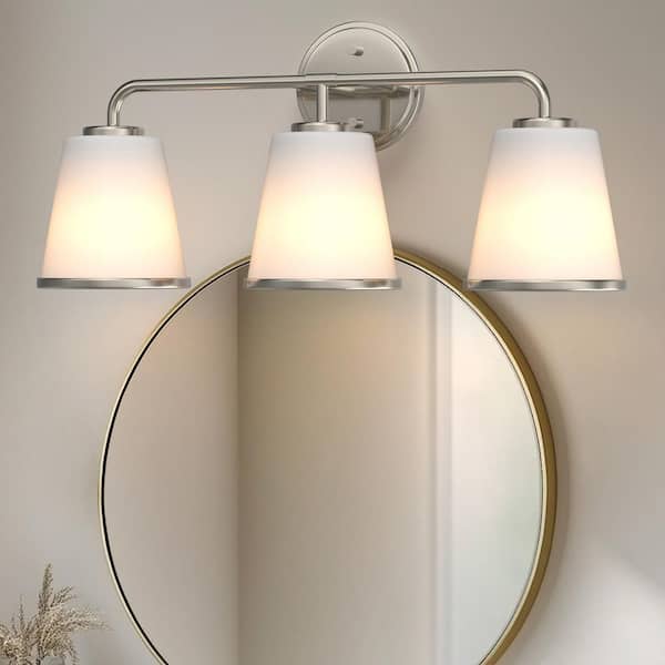 23 in. 3-Light Brushed Nickel Vanity Light with Soft White Glass for Bathroom