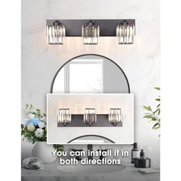 24 in. 3-Light Black Crystal Bathroom Integrated LED Vanity Light Fixture with 3CCT Function for Hallway