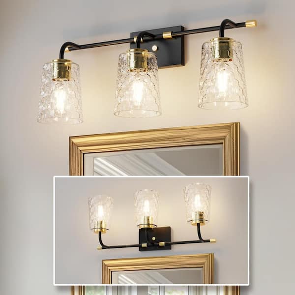 24 in. 3-Light Black Vanity Light with Clear Cone Glass Shades for Bathroom, Mirror, Powder Room