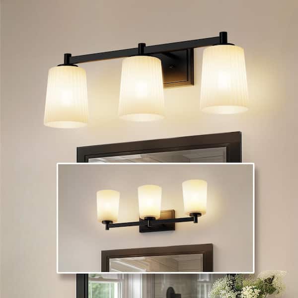 24 in. 3-Light Black Vanity Light with Cone Milk White Glass Shades for Bathroom, Mirror, Vanity Area
