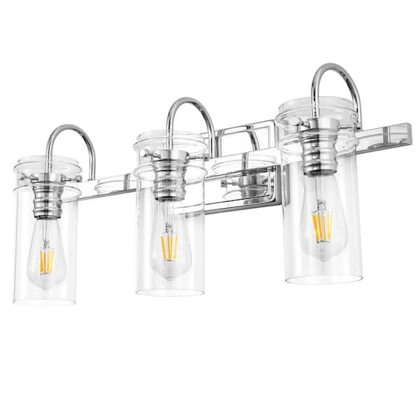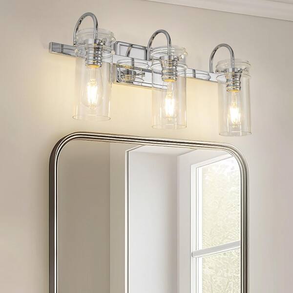 24 in. 3-Light Chrome Bathroom Vanity Light - Modern Wall Sconce with Clear Glass Shades for Stylish Bathroom and Vanity